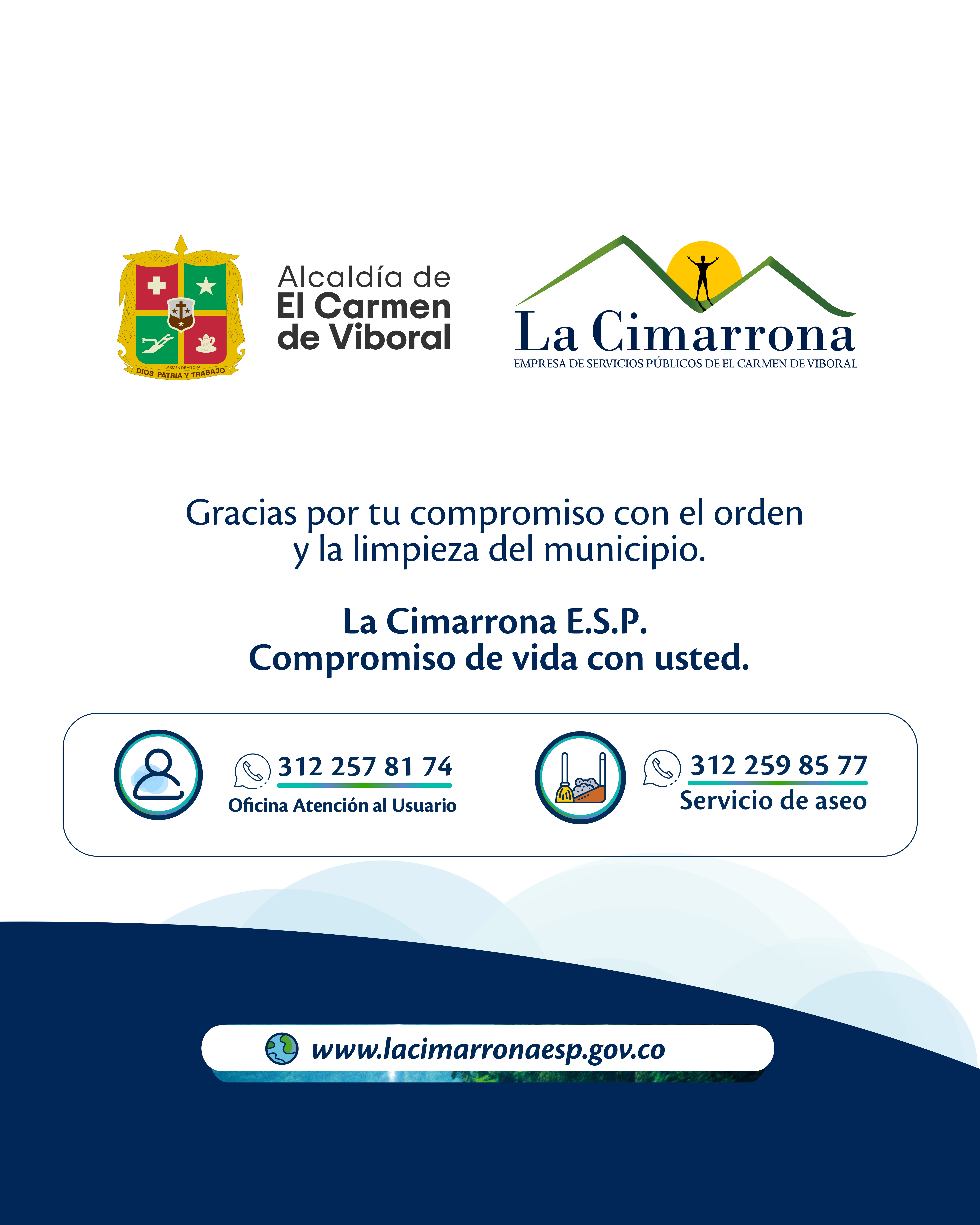 La Cimarrona E.S.P. agradece la comprensión y el compromiso de la comunidad, e invita a continuar trabajando de manera colaborativa por un municipio limpio, ordenado y responsable con el ambiente.